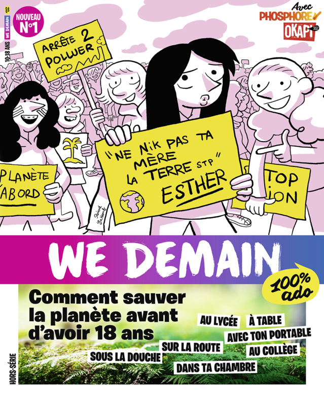 Créatif, car on a réuni les talents de trois rédactions : WE DEMAIN, la revue pour changer d’époque, Okapi, le mag 100 % ados et Phosphore, le mag qui t’éclaire. On a accueilli aussi l’espiègle Esther de Riad Sattouf dans nos pages. Elle bouscule notre couv’ et les échanges avec son grand frère devraient vous rappeler des trucs.