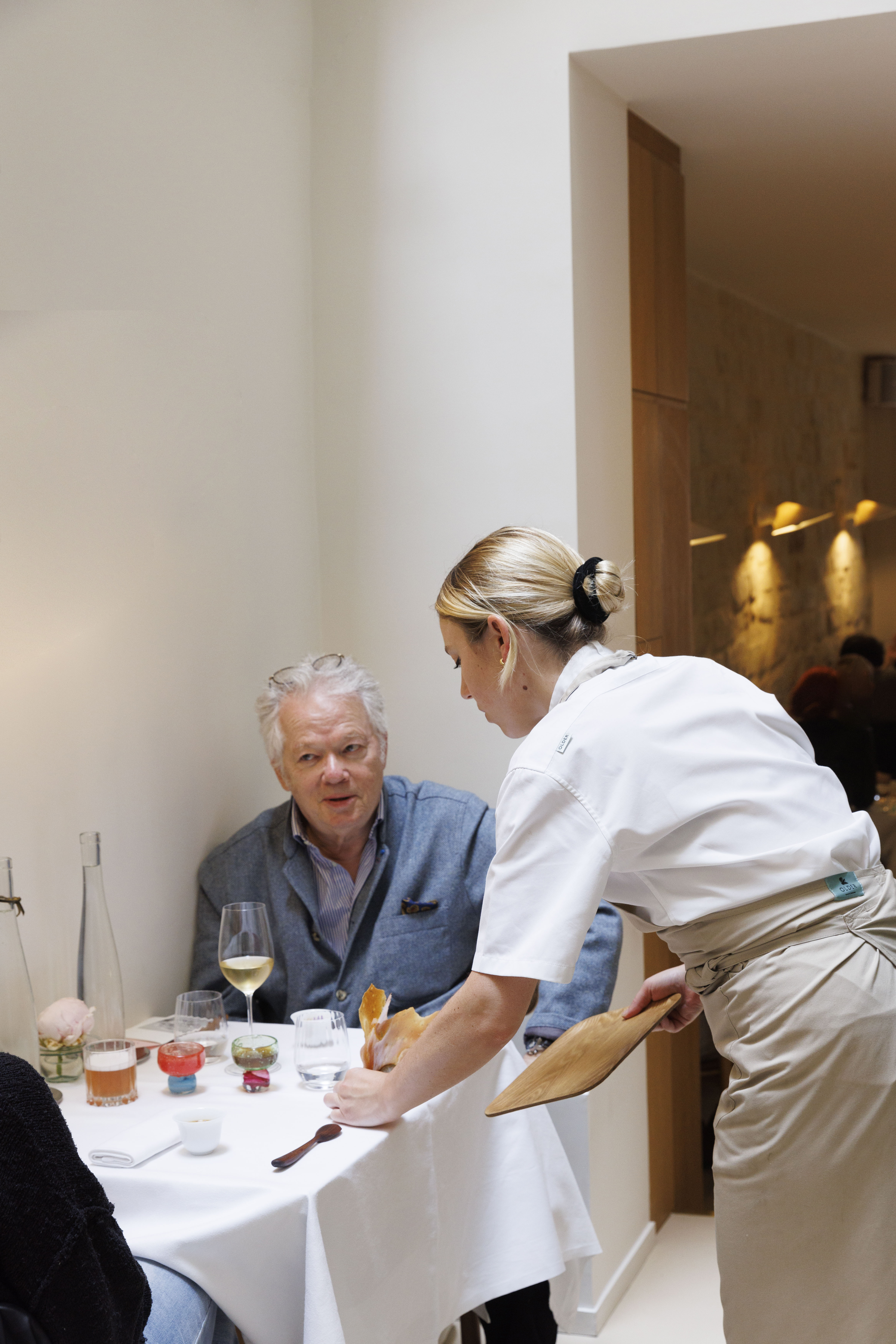 La cheffe du Datil, Manon Fleury, présente quelques amuse-bouches au critique gastronomique Gilles Pudlowski. - © Pauline Gouablin / WD