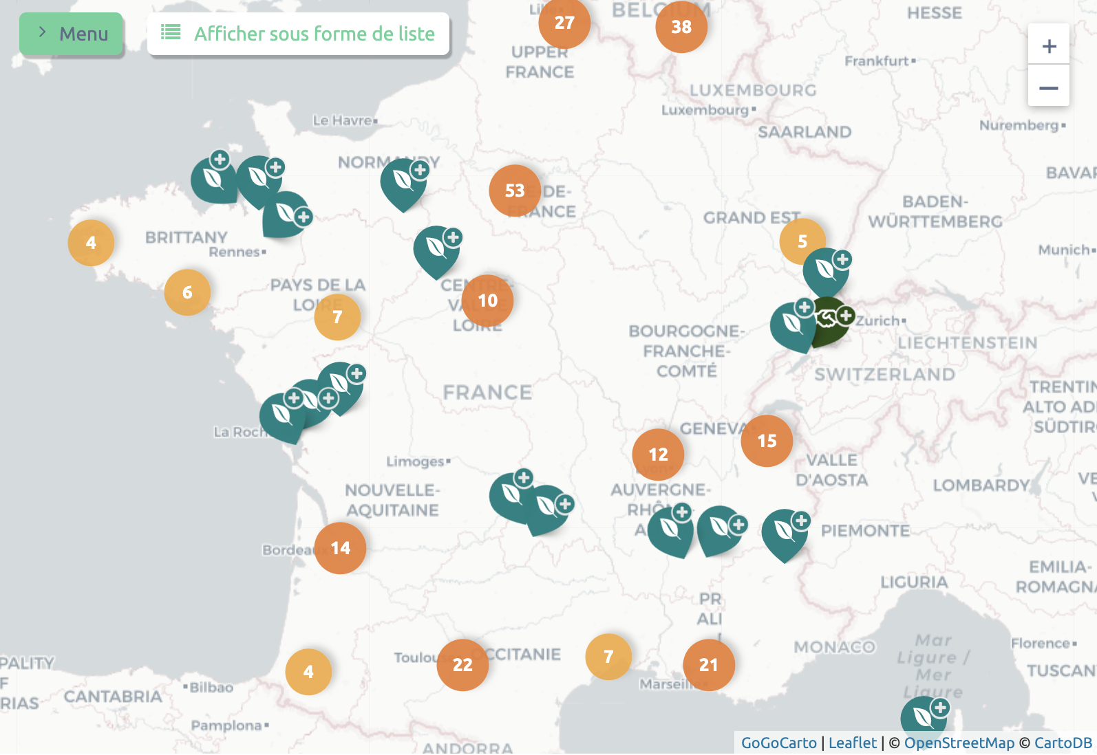 La carte des Initiatives de Transition en France et Belgique francophone