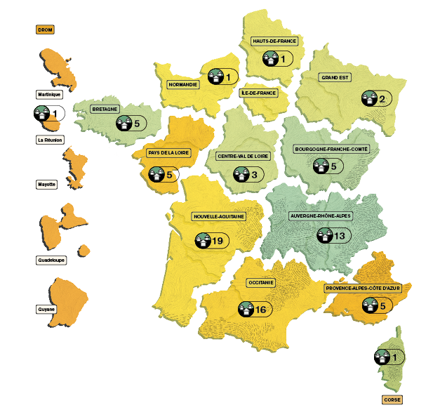 La carte des bistrots de pays et tiers-lieux