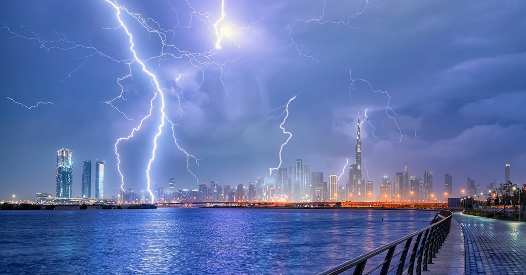 L’intérieur de l’avion ressemblait à un mixeur tant les turbulences étaient fortes. Des milliers de mètres plus bas, un avion plus petit se faufilait dans les courants descendants de la tempête pour mesurer la quantité de pluie qui tombait. Ce n’est pas quelque chose que l’on fait tous les jours, mais les bosses gigantesques causées par la grêle sur les ailes du Learjet témoignaient de ses missions passées. Hormis pour me remémorer le plaisir de voler au cœur d’un orage à bord d’un Learjet, je n’ai pas beaucoup repensé à ce projet. Jusqu’à ce que j’entende parler de l’orage exceptionnel qui s’est abattu récemment sur Dubaï.