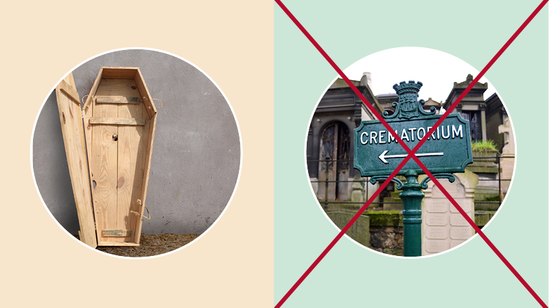 On peut penser que l’inhumation émet moins de CO2. C’est vrai si l’on choisit un simple enterrement “en pleine terre”, qui génère en moyenne 182 kg de CO2. Mais si l’on opte pour un caveau et un monument, cela grimpe jusqu’à 1252 kg de CO2 !