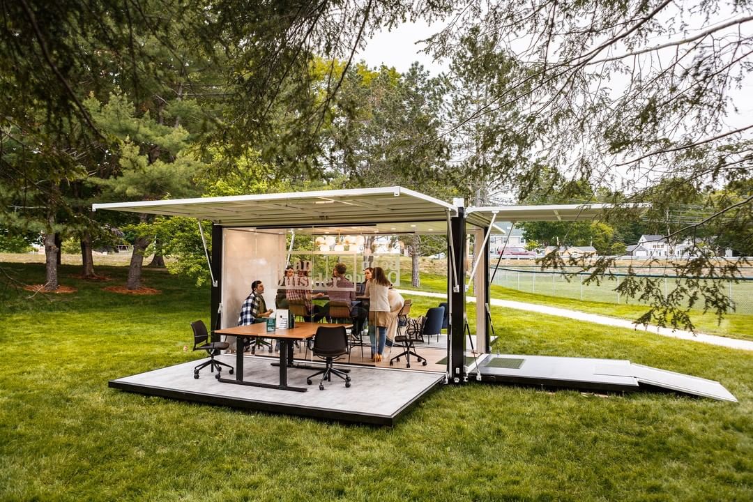 Les espaces de travail ouverts et éphémères se multiplient depuis quelques années. Dès 2016, la firme américaine Peterson Cos imagine l’Outbox, un tiers-lieu 100 % extérieur doté de bureaux, prises électriques et Wifi installé dans la commune de Silver Spring (non loin de Washington).