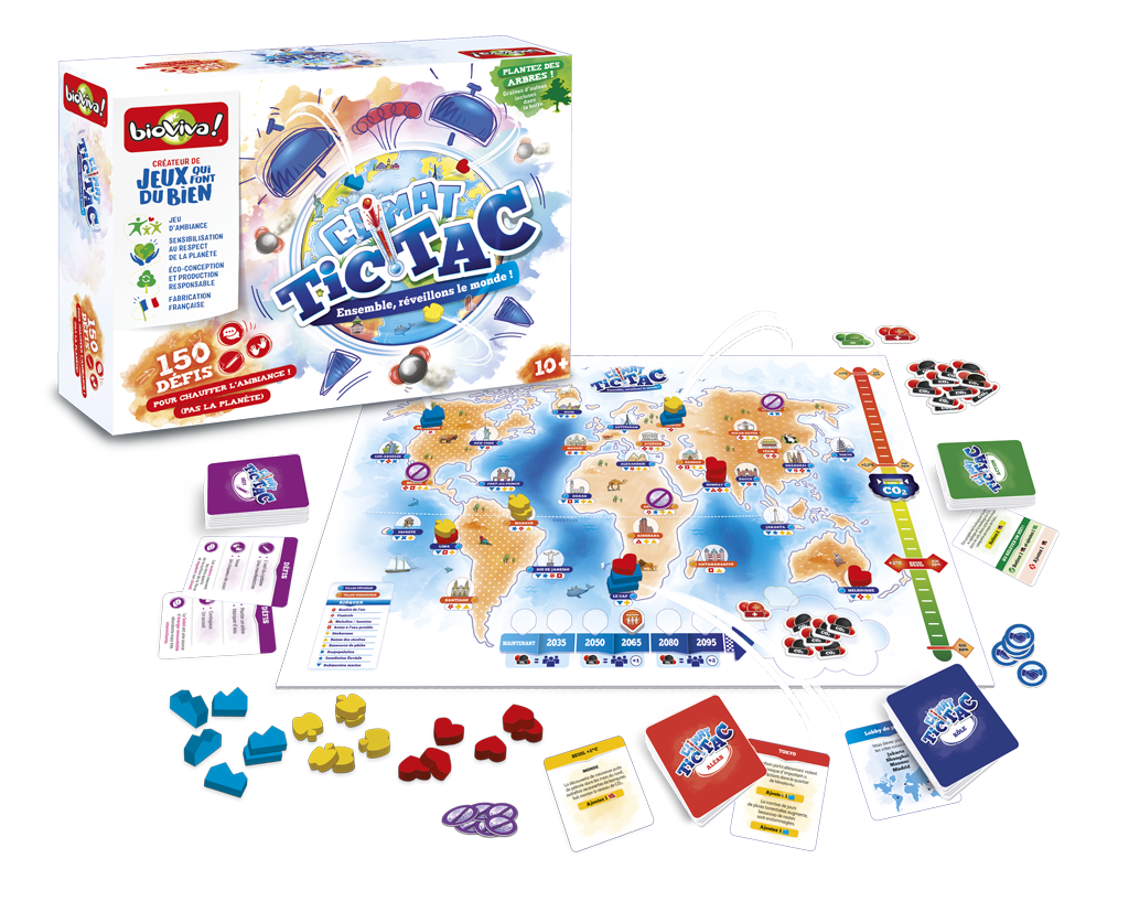 À l’approche des fêtes de Noël, vous cherchez un jeu éco-responsable et collaboratif, pour passer en famille de bons moments ? Voici une idée dans l’air du temps : Climat Tic-Tac de Biovia. Dans ce jeu de plateau, les participants doivent s’allier afin de lutter contre le changement climatique. Tout en découvrant des solutions pratiques pour contrer ses effets.