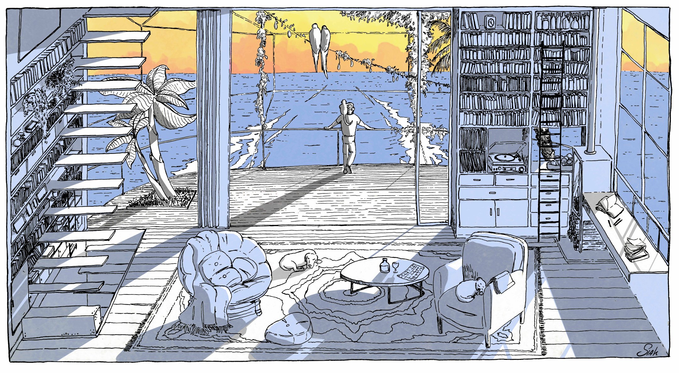 Chacun peut télécharger gratuitement un dessin mis au point par le dessinateur Timothy Hannem, représentant une grande pièce vide et un escalier, puis le redécorer entièrement en y ajoutant des fenêtres, des meubles, de la déco, des plantes… Afin de créer son appartement de “confinement idéal”.