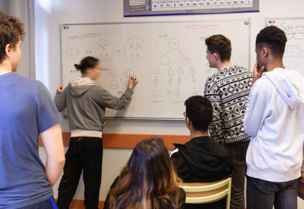 Théorisée et pratiquée en France dès la fin du 17e siècle puis popularisée jusqu’au début du 19e, cette méthode d’enseignement favorise la coopération entre des élèves de niveaux voire d’âges différents. L’idée est de faire des premiers de la classe les pivots de la méthode, en leur demandant d’expliquer le cours à leurs camarades pendant que l’enseignant, lui, se consacre aux élèves les plus en difficulté. Naturellement, des groupes se forment autour des îlots de tables, par niveaux et affinités. “L’élève est capable de savoir où il se situe par rapport aux autres et à l’enseignement. C’est aussi cela l’école de la confiance”, estime Vincent Faillet.