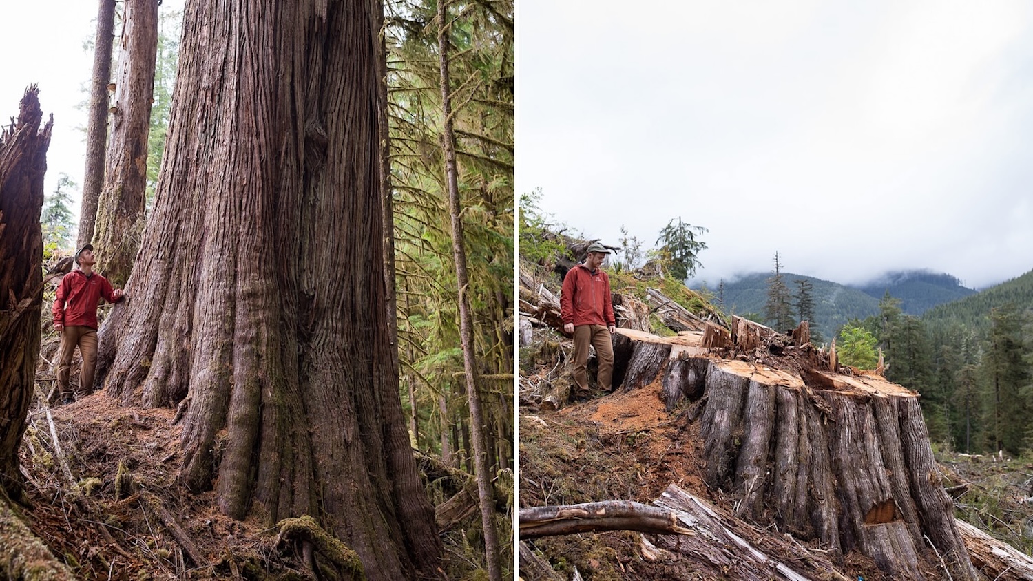 Un des "avant-après" de TJ Watt pour dénoncer la déforestation sur l'île de Vancouver, en Colombie-Britannique (Canada). - © TJ Watt / Instagram