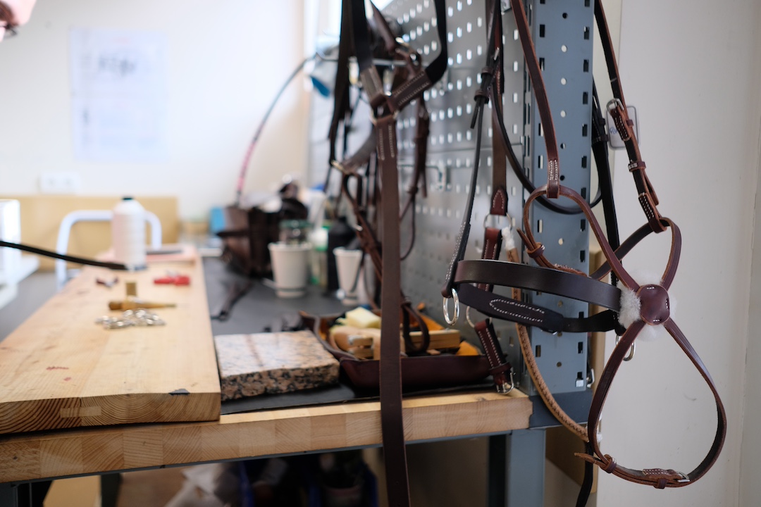 🪡 En 2016, Franck y a d’abord appris le métier de sellier-bourrelier. Le matin, il confectionnait des paires de rênes neuves puis, l’après-midi, il était chargé de récupérer et déposer du matériel dans les différentes écuries de course. Depuis un AVC, il se concentre sur la fabrication de matériel neuf dans l’atelier.