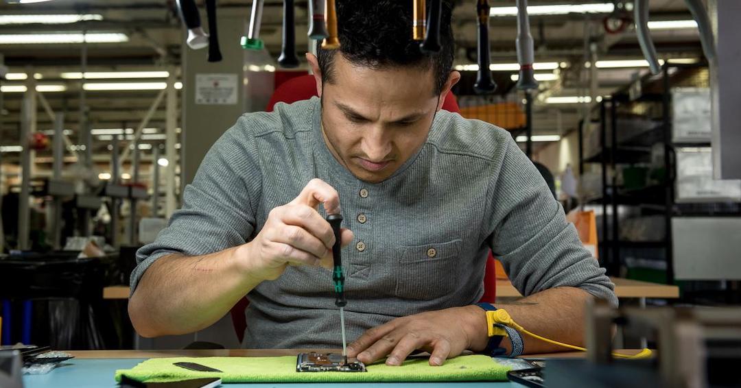 Réemployer parce que “le réemploi, c’est mieux que le simple recyclage.” Si les Ateliers du Bocage ont conservé l’activité initiale, celle de la fabrication de palettes à dosserets pour la menuiserie industrielle, le reconditionnement de matériel téléphonique et informatique est une activité en plein essor. “Avec 450 000 téléphones traités par an, nous sommes le plus gros acteur d’économie sociale et solidaire de reconditionnement de téléphonie.” Pour chaque téléphone vendu, en moyenne 70 euros, un téléphone est donné à une association d’aide aux plus fragiles.