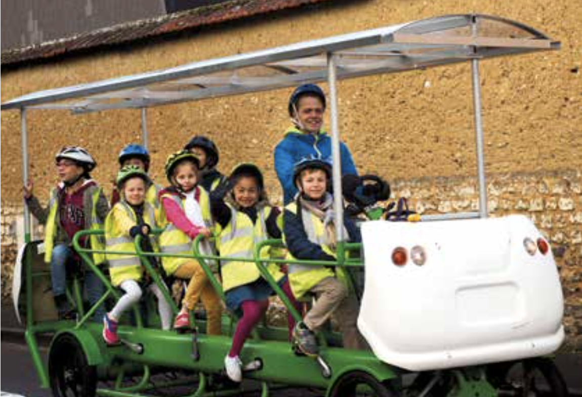 👦 Un “minibus” à pédales de huit places, tout-terrain, qui a été conçu avec des matériaux locaux et des pièces interchangeables. Déjà testé à Louviers (Eure) dès 2017, ce mode de transport baptisé Waylibus est mené par Human-Mob, une entreprise créée en 2023 par Amaury Piquiot et son associé Guillaume Yrondelle. Il sera en service à Rouen dès 2024.