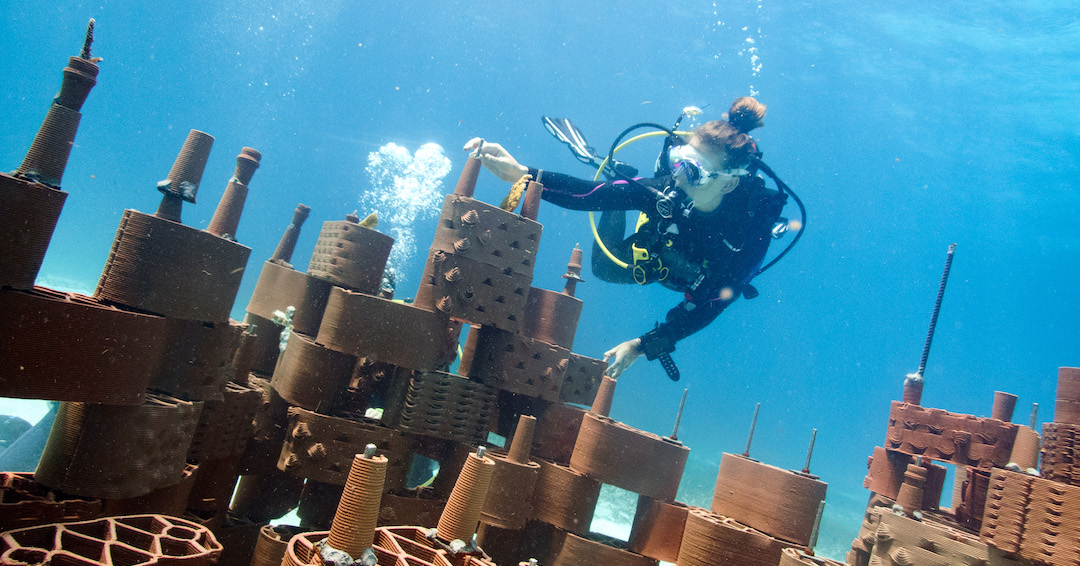 Considérés comme la « forêt amazonienne de l’océan », les récifs coralliens sont le refuge et l’habitat des animaux et plantes marins. Or, ils sont de plus en plus menacés. Grâce à l’impression 3D, l’Allemande Ulrike Pfreundt, installée en Suisse, fabrique du corail. Elle remplace celui qui a été détruit par des récifs artificiels. Avec son ONG Rrreefs (repenser, reconstruire, régénérer), elle ambitionne de remplacer le maximum de récifs coralliens morts.