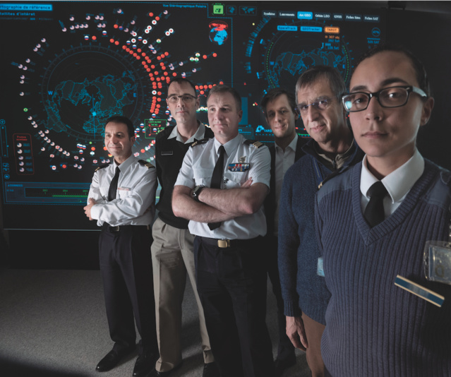 Le commandant Nicolas, initiateur de l’analyse des mouvements sur l’arc géostationnaire, devant la représentation graphique de satellites de différents pays. Ce dispositif permet d’observer les mouvements de satellites aux intentions parfois suspectes voire inamicales et qui témoignent de cet enjeu militaro-spatial. C’est grâce à ce système que l’adjudant-chef Arnaud a pu repérer les déplacements du satellite russe Luch-Olymp venu espionner le satellite franco-italien Athena-Fidus (communications militaires sécurisées).