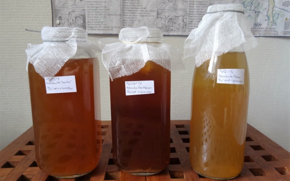 Il faut ensuite se munir d’une casserole, d’une cuillère en bois, d’un goupillon, d’un entonnoir, de quelques bouteilles ou bocaux en verre d’un litre, de gaz, d’élastiques, de thé et de sucre. La recette est simple : plonger une souche de Kombucha dans du thé sucré, avant de laisser le tout reposer pendant une semaine.