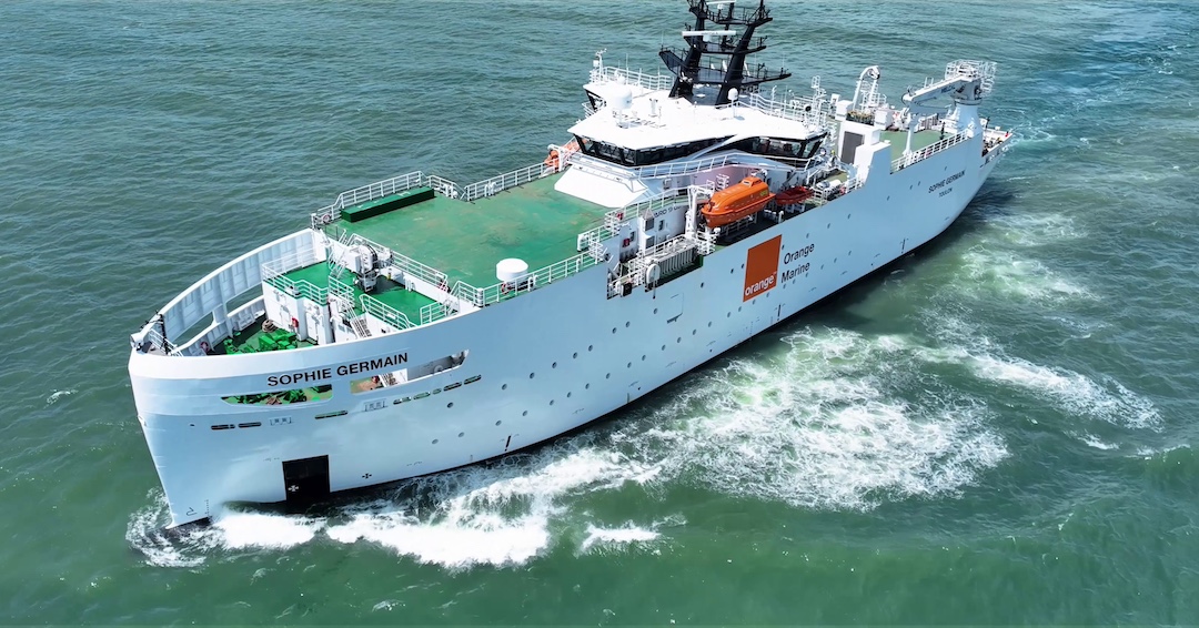 Le 22 septembre 2023, le nouveau navire câblier d’Orange Marine, le Sophie Germain, a été inauguré à La Seyne-sur-Mer, au bord de la Méditerranée. Ce navire a pour mission de réparer des câbles sous-marins de télécommunications défectueux. Il pourra aussi s’occuper des câbles d’énergie reliant les éoliennes offshore. Le bateau sera appelé à intervenir aussi bien en Méditerranée qu’en mer Noire, en mer Rouge… partout où ses compétences sont nécessaires. Avec une spécificité : ce navire hybride est bien moins énergivore que ses prédécesseurs.