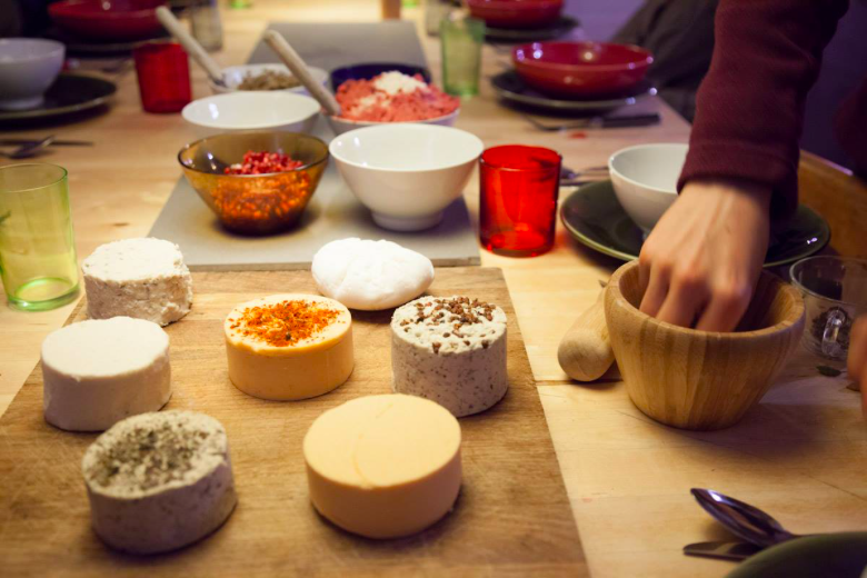 Lorsqu’elle arrive enfin dans sa toute nouvelle boutique-laboratoire du 11ème arrondissement de Paris, qui n’ouvrira au public qu’en avril, elle a à peine le temps d’enfiler son tablier que des voisins font irruption. Ce qu’ils se pressent à venir chercher ? Du fromage végan. Un produit dénué de tout ingrédient d’origine animale que l’entrepreneuse a malicieusement baptisé “vromage”.