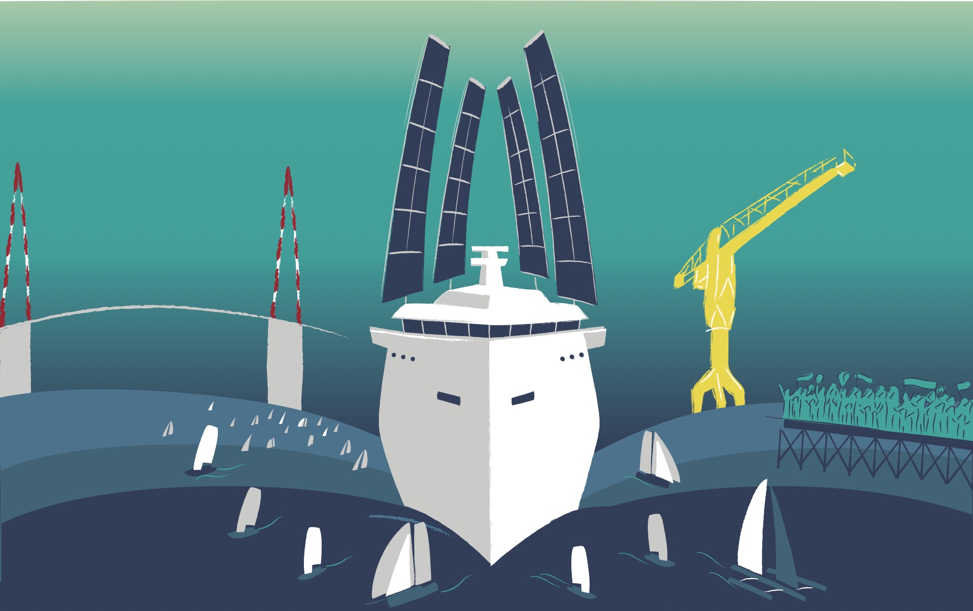 Canopée, c’est le cargo à propulsion vélique qui transportera les fusées Ariane en mode bas-carbone. Il accueillera les 100 projets pour un voyage début juin 2023 entre Saint-Nazaire et Copenhague (Danemark). C’est là que se situe le siège de l’Agence Européenne de l’Environnement. Ses quatre énormes ailes articulées de 375 m2 permettent de moins solliciter les moteurs diesel. Conséquence : une réduction de 35 % des gaz à effet de serre émis lors du voyage.