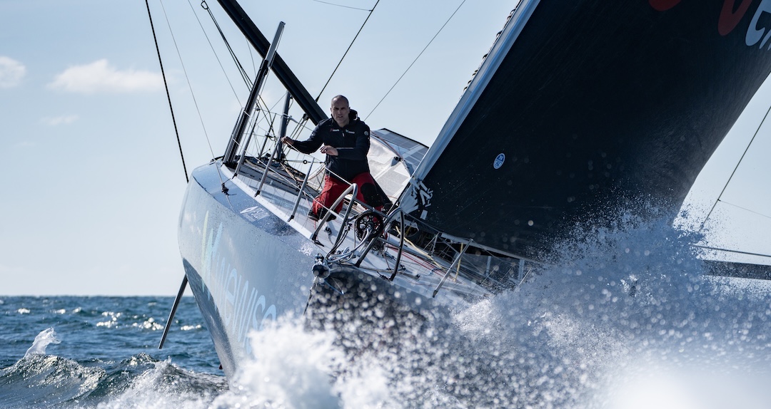 Fabrice Amedeo sur le pont du Nexans Wewise, son monocoque de 60 pieds sur lequel il prendra le départ du Vendée Globe 2024. À l’intérieur, un véritable petit laboratoire scientifique. Crédit : Gauthier LEBEC.