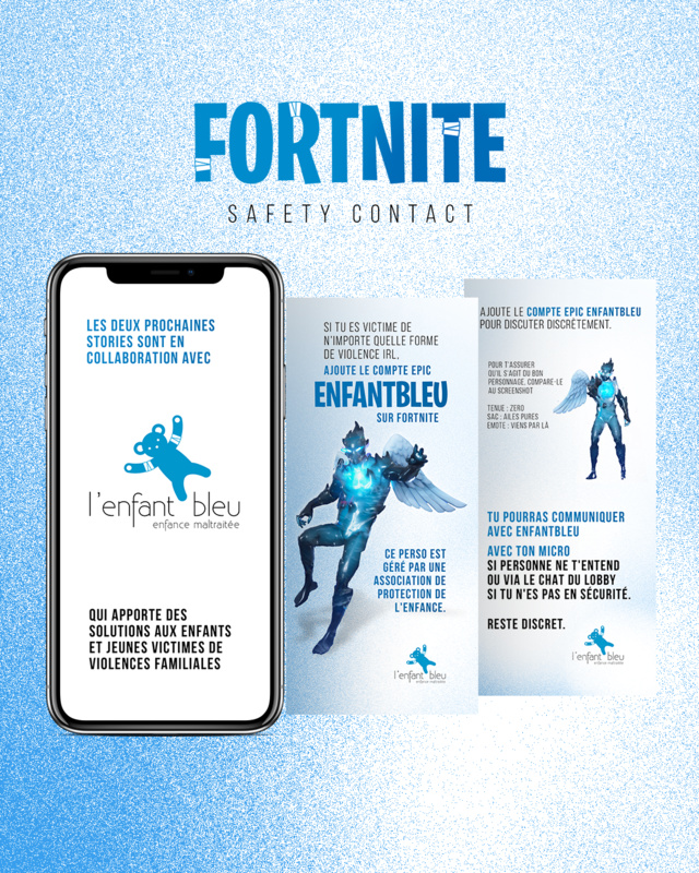 “Fortnite est le jeu du moment, déclare Laura Morin, 96 % des mineurs y ont joué au moins une fois. Et il y avait cette possibilité de pouvoir créer un personnage facilement.” Un personnage ailé, d’un bleu électrique, qui porte le nom de son association : EnfantBleu.
